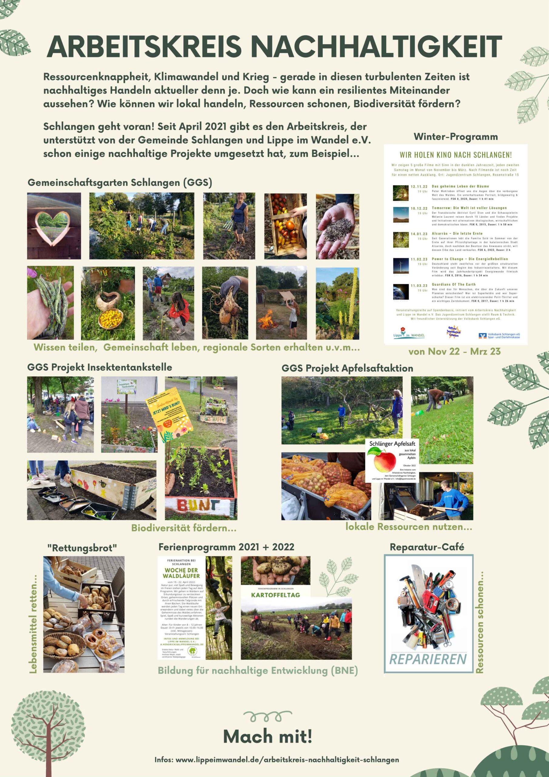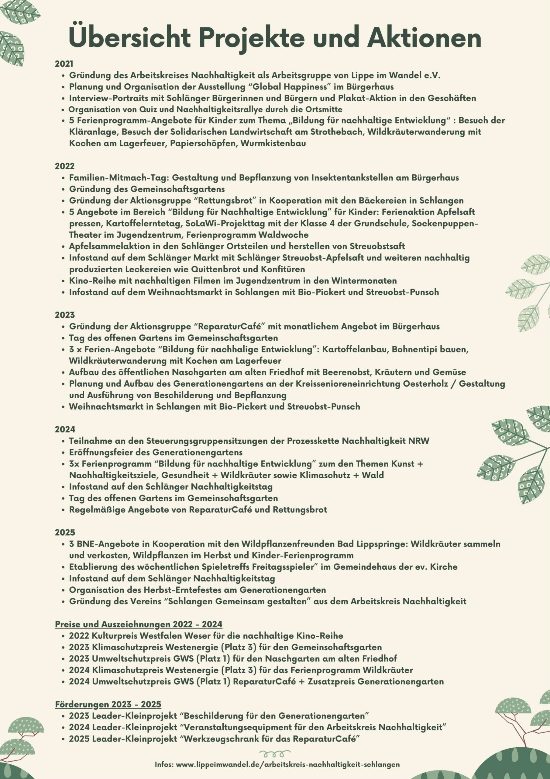 Der Arbeitskreis Nachhaltigkeit wurde initiiert von Lippe im Wandel e.V. Hier eine Zusammenfassung der Aktionen von der Gründung bis 2021 bis 2025: